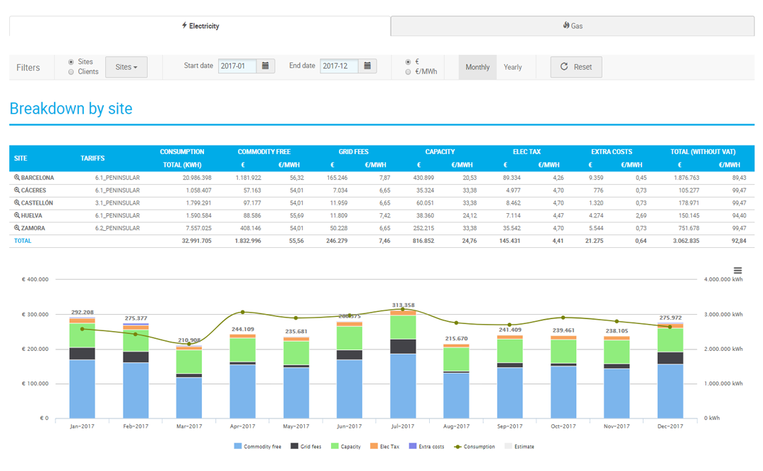 To allow you to do that we give you the possibility of tracking all your energetic costs in both gas and electricity in the same place.